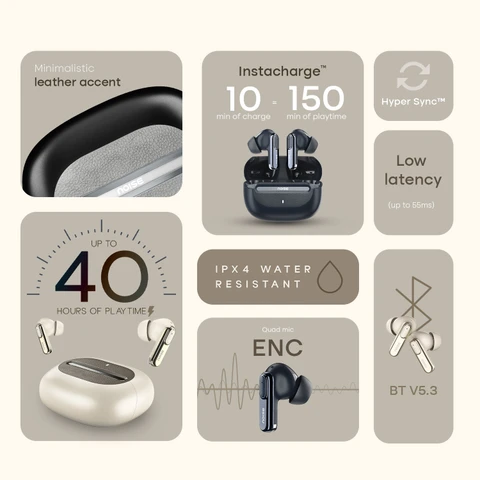 Designed to enhance your look, the Noise Buds Uno come with a sleek, compact design featuring a distinctive grained leather accent. This touch of minimalism makes these earbuds a perfect choice to complement your everyday essentials, ensuring you carry both functionality and fashion in one smart package.